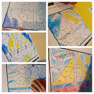 We also used a color by number page with the numbers 1-5. My kids are really getting good at this, and it's only the second/third time for them! They are getting better and sitting and listening for the directions, working at their own pace. I love it!